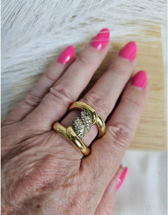 Anel de Aço Inoxidável, dourado com zircónias.