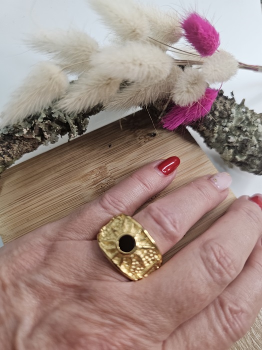 Anel de Aço Inoxidável com Pedra preta