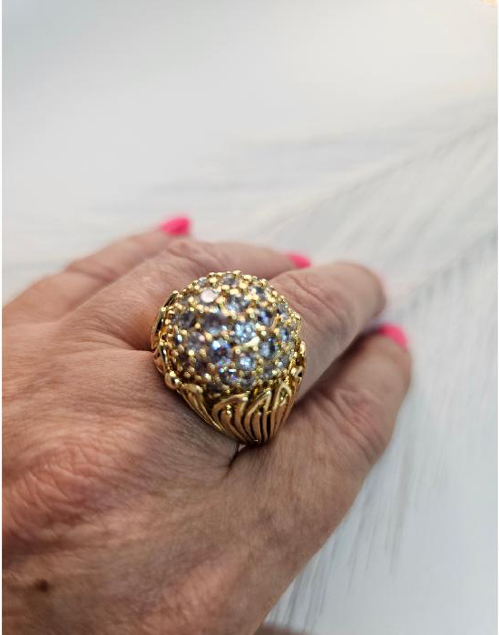 Anel Semijóia de Aço Inoxidável, cravejado com zircónias brancas.