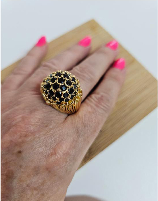 Anel Semijóia de Aço Inoxidável, cravejado com zircónias pretas.