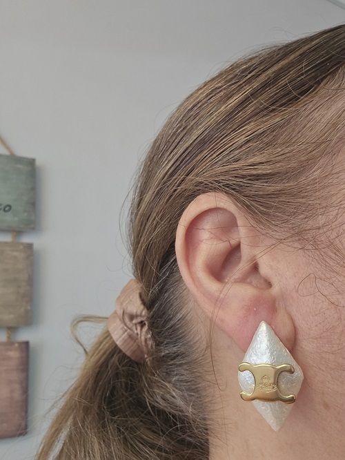 Brinco de Aço Inoxidável Prateado e acrílico branco