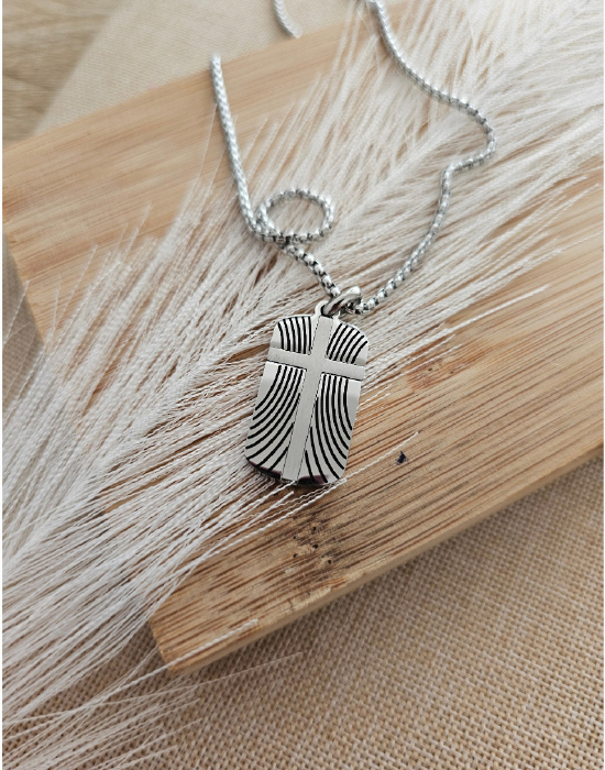 Fio Medalha Cruz Prateada de Aço Inoxidável de Homem.