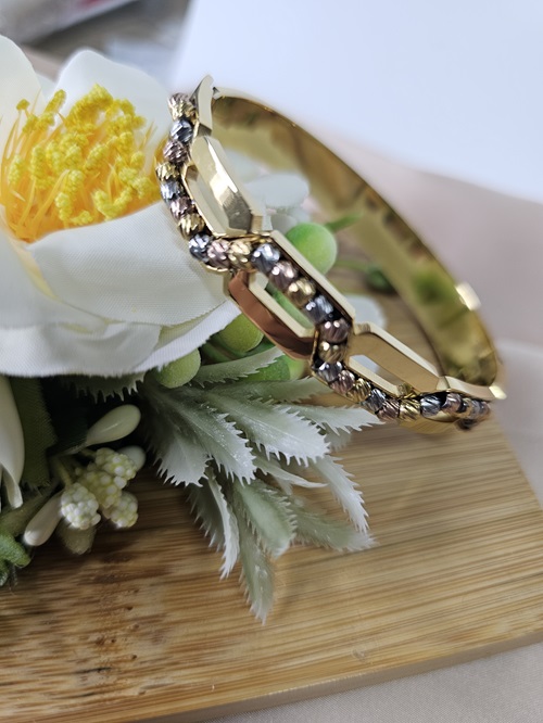 Pulseira de Aço Inoxidável dourada, com aplicações no tricolor
